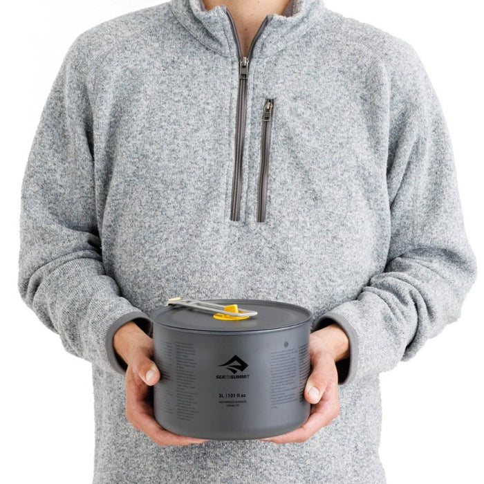 The Click-Safe handle locks in securely during use and reverses to hold the lid and nesting contents for compact transport. Perfect for backcountry chefs looking to keep weight down without compromising performance.