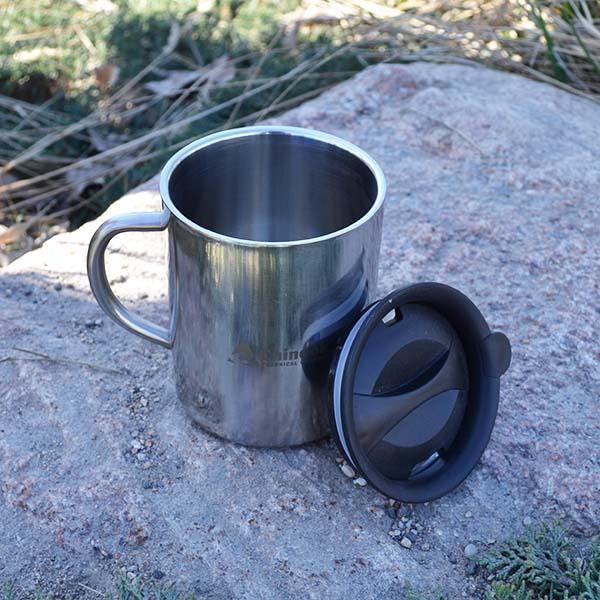 An insulated double-walled mug made of stainless steel to keep your beverage at a constant temperature. Comes with a snug fitting drinking lid.