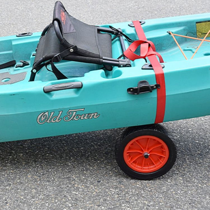 Additionally, each cart is equipped with a two-piece cam-style load strap and heavy-duty "Never Go Flat" tires to make sure your boat stays firmly in place during transit. The integrated push-button wheel release system eliminates the need for wheel retainer clips.
