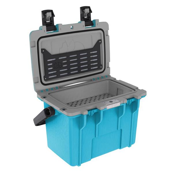 Highly rated, rugged personal sized cooler made with commercial grade 1.5" thick polyurethane walls and a freezer gasketed lid. Perfect for keeping your meals cold all day on the jobsite or your beach beverages brain-freeze cold. The cooler has a removable inner tray to keep things dry, a lid pocket for small essentials, and a magnetic bottle opener under the rim. Warranty is 3 years.