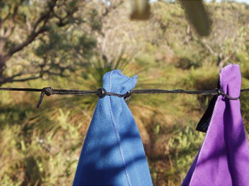 This is one of those little camping gizmos that your whole group ends up using for the entire trip (sometimes after making fun of you for bringing it). So small it folds into it's bag to the size of a chicken's egg, the lightweight line stretches to 3.5 metres. There are little rubber beads along it that cinch your wet things so they don't fly off the line in the wind. Better than getting sap all over your clothes from draping them over tree branches.