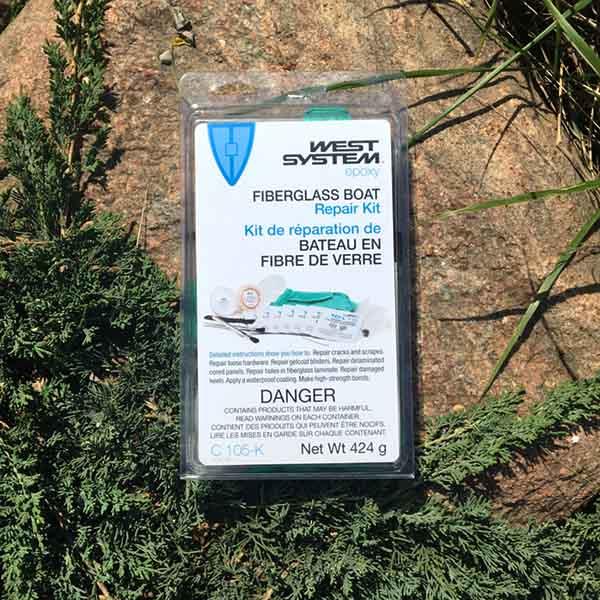A kit for repairing cracks, scrapes, gelcoat blisters, loose hardware, delaminating decks and panels and small holes. It contains eight packets of West System 105 resin and 205 fast hardener, fiberglass fabric, adhesive filler, fairing filler, glue brushes, mixing pots, a reusable mixing stick, application syringe, three pairs of protective gloves and illustrated instructions.